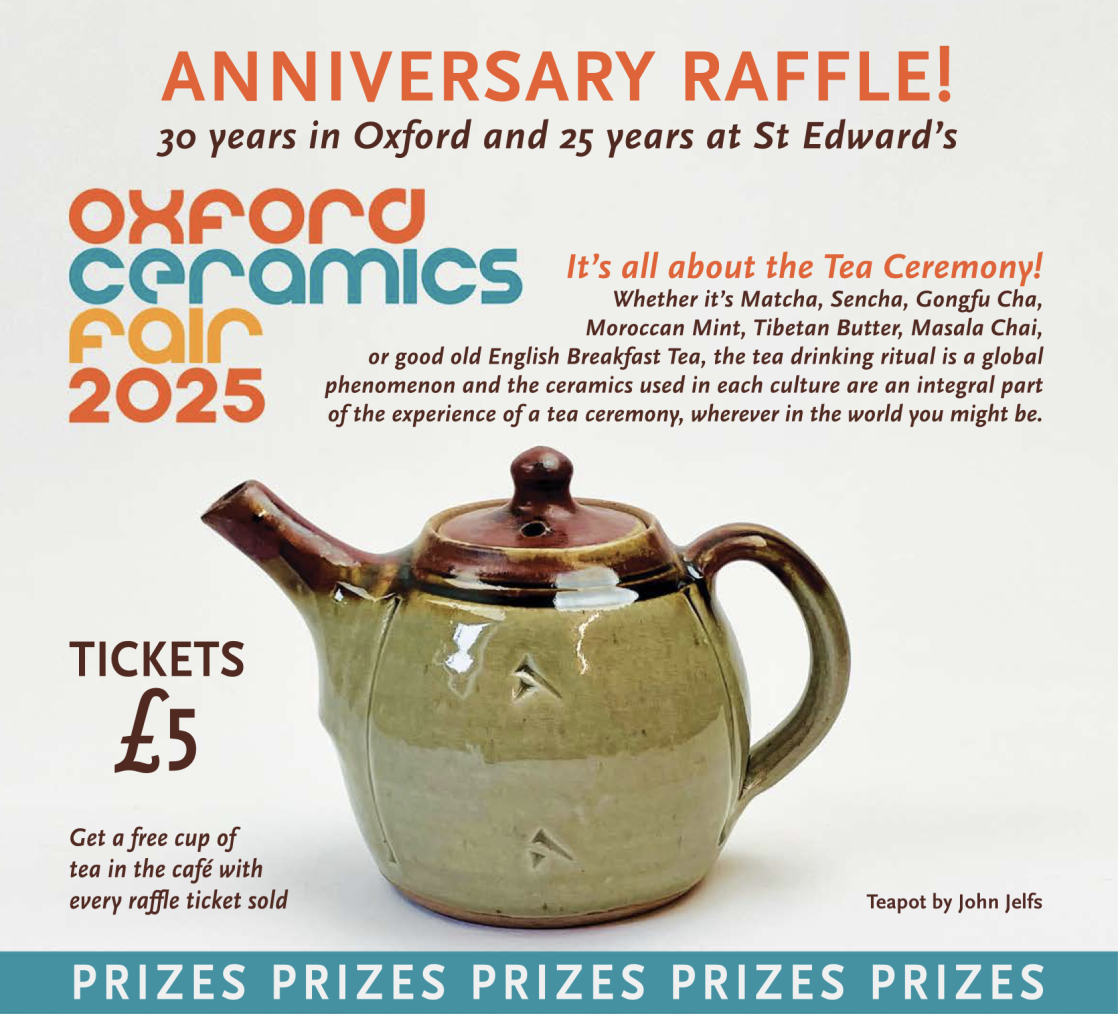 We have many wonderful ‘tea-related’ prizes including this gorgeous John Jelfs teapot, and Dylan and Jane Bowen have donated an extraordinary prize of a free place on their Slipware course in July 2026!